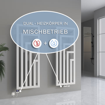 Diese Heizkörper zeichnen sich durch ihre Flexibilität aus: Sie können sowohl an zentrale Warmwassersysteme angeschlossen als auch elektrisch betrieben werden. Dies ermöglicht, je nach Bedarf, den Heizkörper im Mischbetrieb zu nutzen. Ihr elegantes Design kombiniert sich mit praktischer Funktionalität und erhöht so die Ästhetik und den Komfort Ihres Badezimmers.